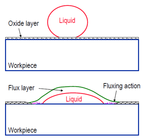 - 플럭스는 산화물을 용해하고 제거함으로써 젖음성을 촉진한다.