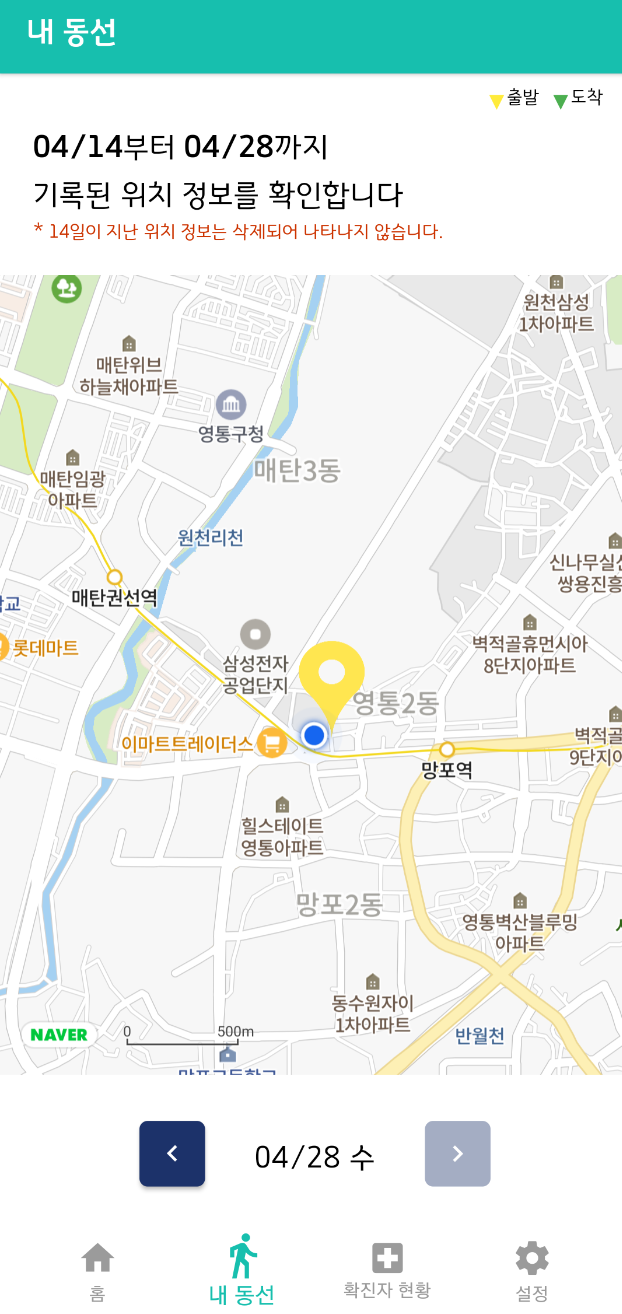 공개된 확진자의 동선과 사용자의 최근 2주간 동선을 비교해