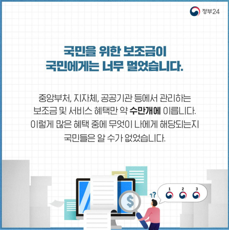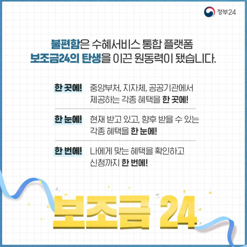 보조금24는 일일이 기관 또는 기관별 홈페이지를 방문하지 않고