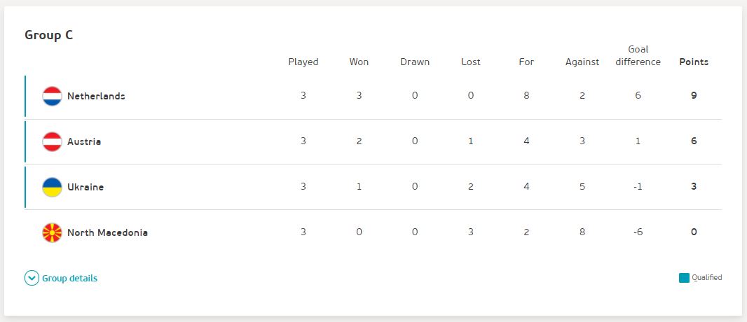C 그룹 : 네덜란드, 오스트리아, 우크라이나