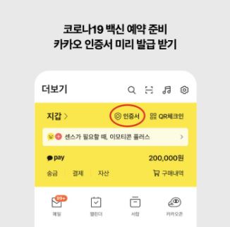 카카오톡 실행 > 더보기 탭 > 지갑 > 인증서에서 발급받기