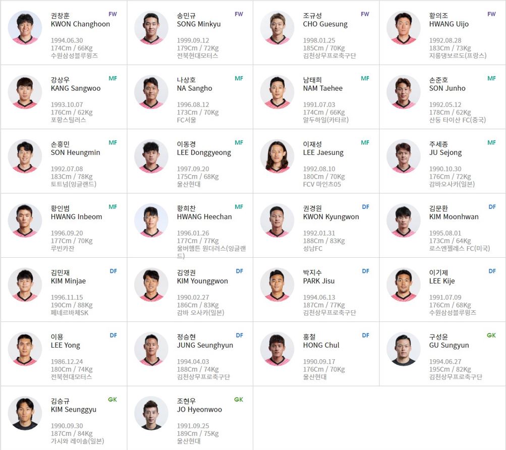 벤투 감독은 최종 예선에 나설 태극전사 26인을 선발했으며