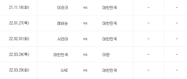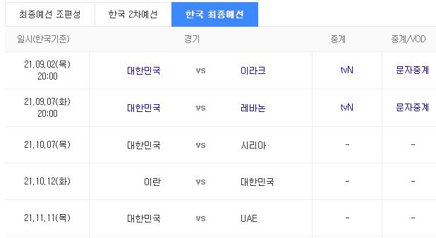 한국 대표팀의 월드컵 최종예선 일정은 아래와 같습니다.