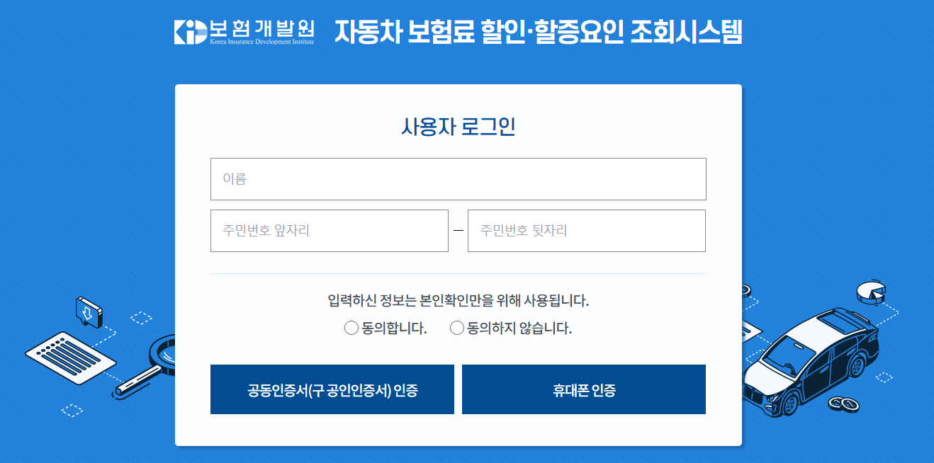 자동차 보험료 할인, 할증요인 조회시스템으로