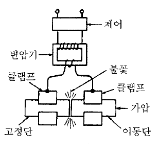 - 용접하고자 하는 소재를 약간 띄움 → 한 소재는 고정대/또 다른 소재는 이동대의 전극에 고정