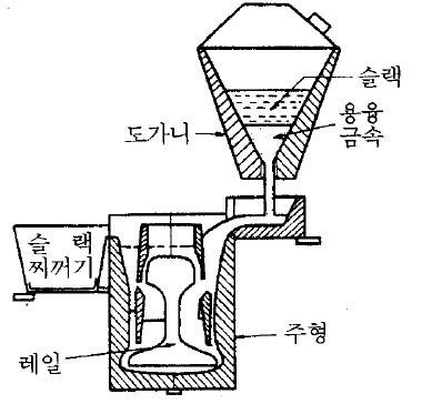 레일과 레일 사이를 접합시키려는 용융 테르밋 용접