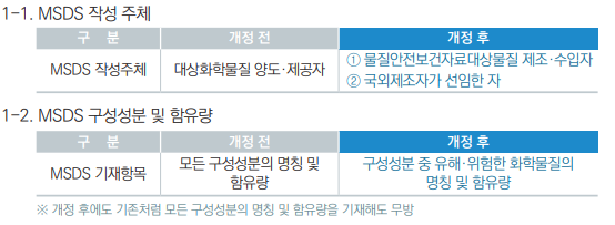 1) MSDS 작성주체와 기재대상 성분 병경되었습니다.