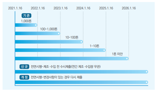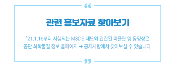 2) 신규 작성 MSDS 경우 ’21.1.16~ 물질안전보건자료대상물질을 제조하거나 수입하기 전에 제출